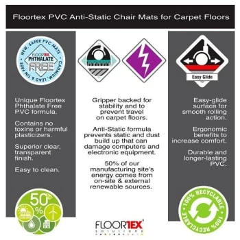 - All Floortex PVC/ Vinyl protector mats are produced at our manufacturing site where 50% of the energy comes from on-site and external renewable sources. Contains up to 25% recycled content and 100% recyclable for a reduced carbon footprint